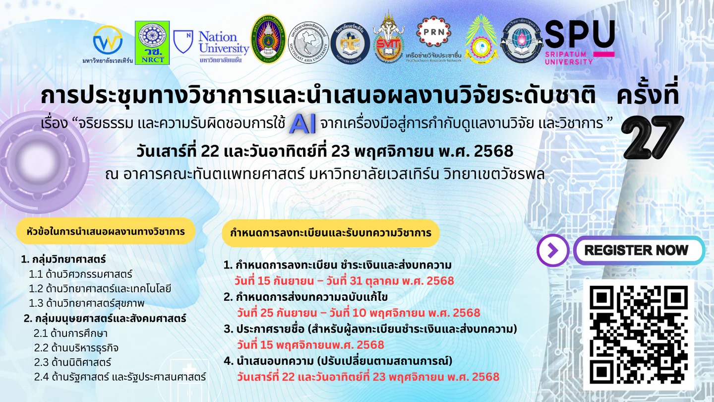 ขอเชิญเข้าร่วมประชุมวิชาการและนำเสนอผลงานวิจัยระดับชาติ ครั้งที่ 27